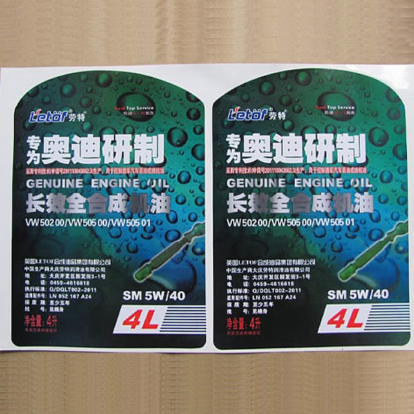 潤滑油標(biāo)簽印刷廠家,耐油污腐蝕機油標(biāo)簽,不干膠標(biāo)簽印刷采用耐老化防水材料UV印刷,標(biāo)簽防水耐刮蹭